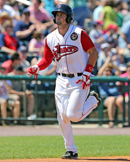 his hands high. Long stride with slight leg lift. Uppercut swing plane.