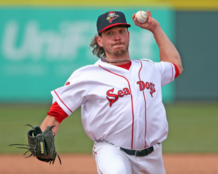 three-quarters arm slot. Starts on the third base side of the