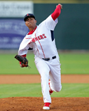 half. Struggles to repeat his delivery. Very inconsistent release point.